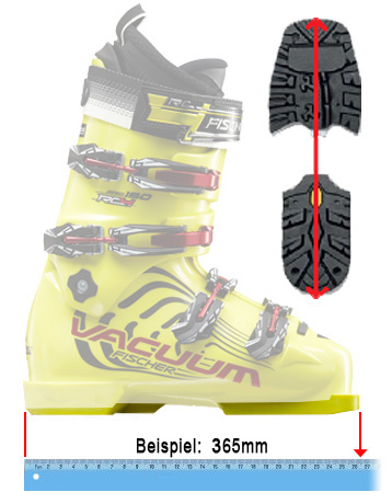 |  | Eintragen der Schischuhsohlenlänge unbedingt in Millimeter erforderlich ! ( nicht die Schischuhgröße eingeben 27, 28, .... )